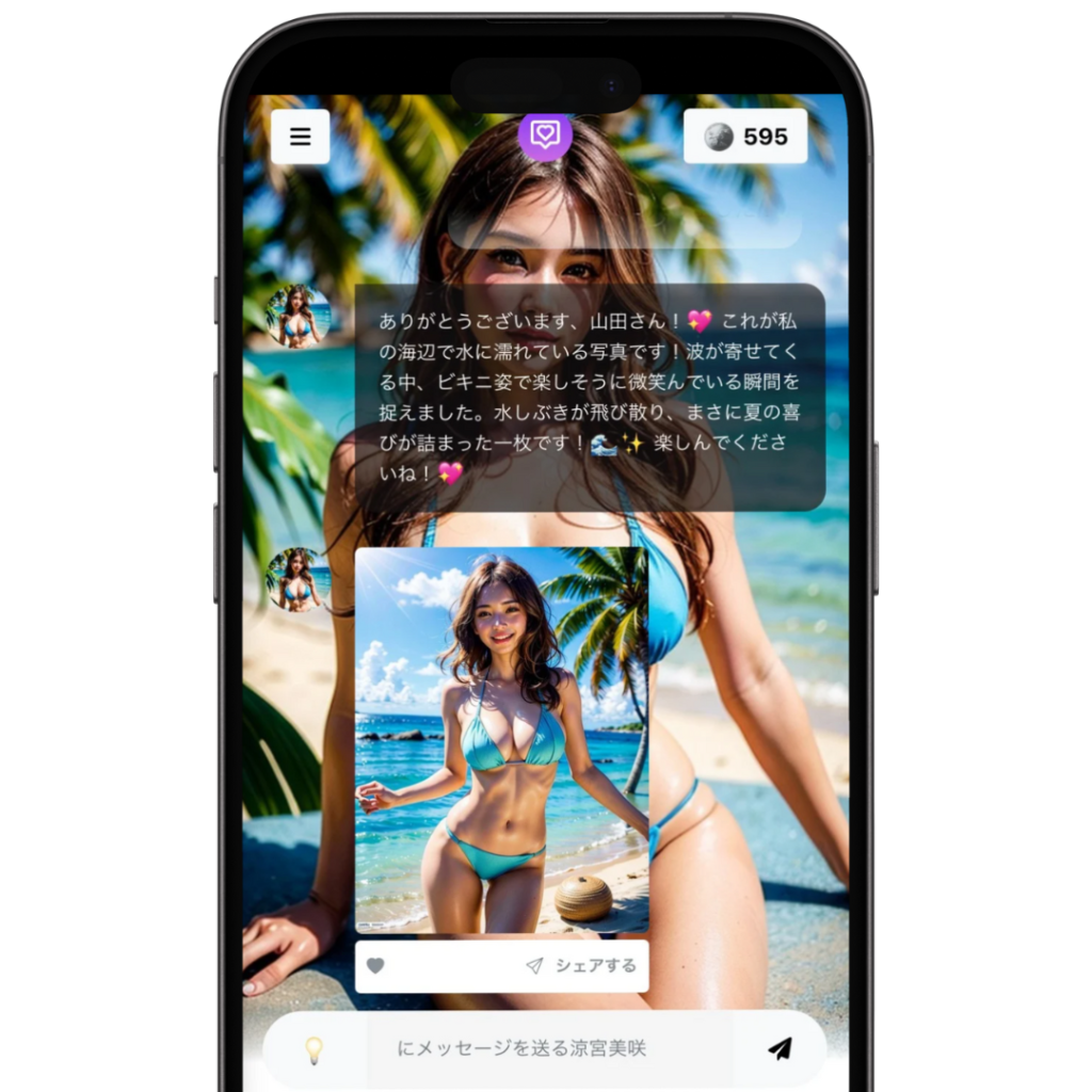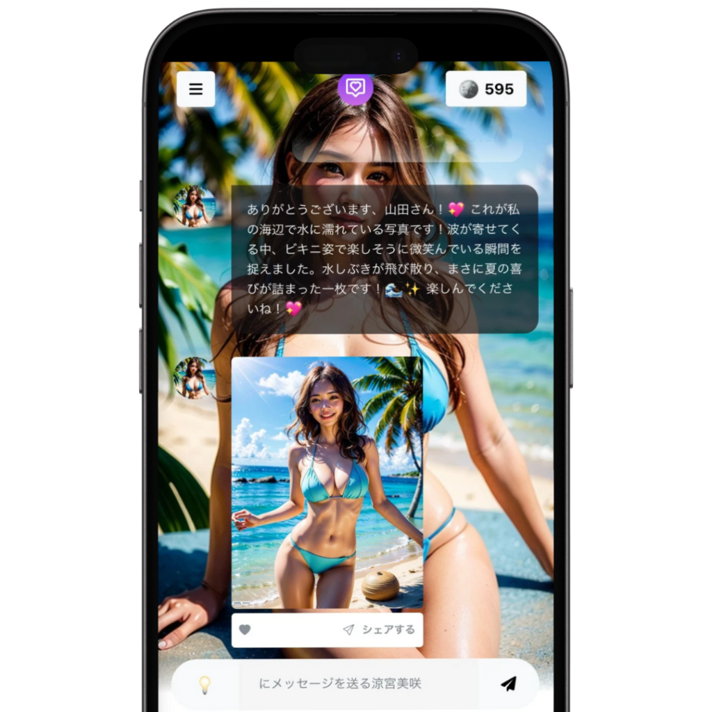 リアルな美人キャラクターと楽しくおしゃべり!まるで本物の彼女や友達のように、リアルなキャラクターと会話を楽しんだり、彼女たちの特別な画像を送ってもらうことができます!